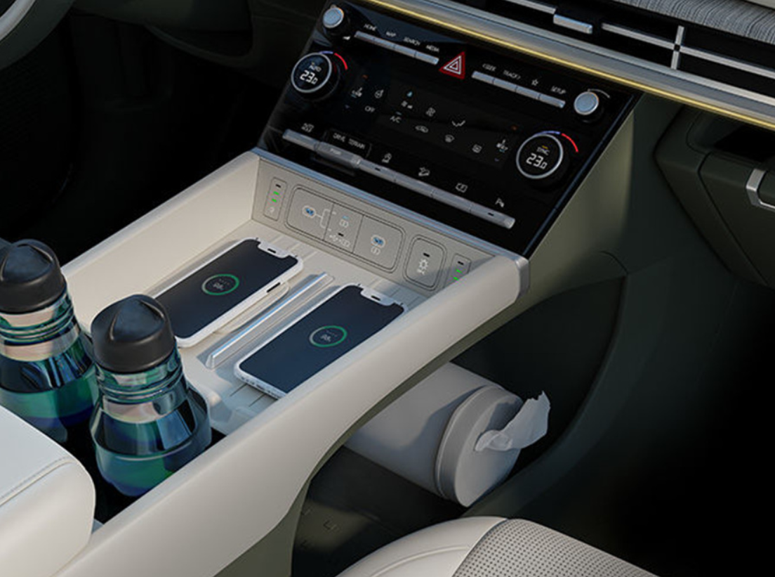 ▷ 현대차 최초의 듀얼 무선 충전 패드를 적용했습니다. 아마 옵션으로 선택해야 할 것 같지만 최초는 언제나 많은 변화를 불러일으킵니다.